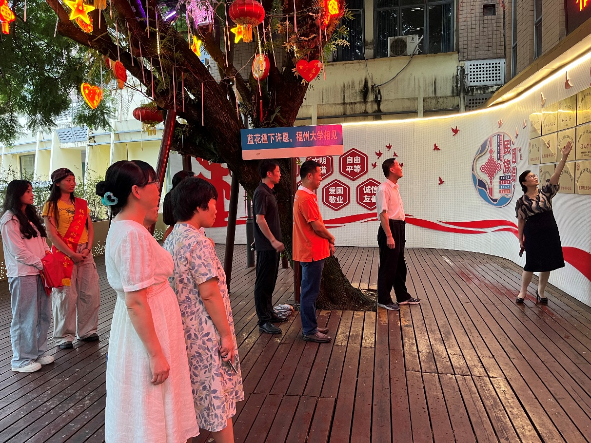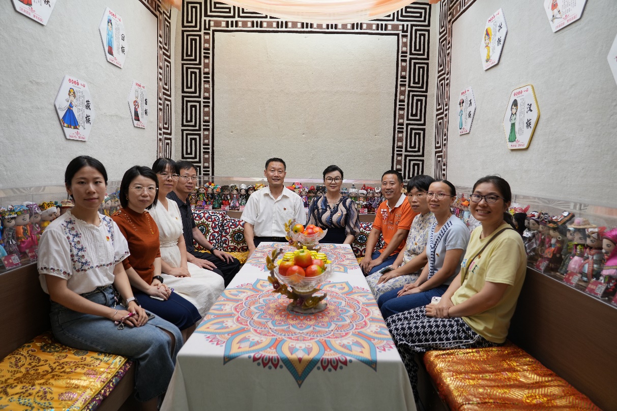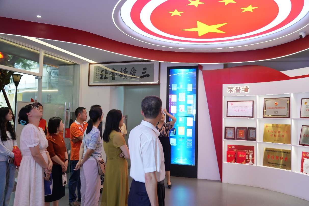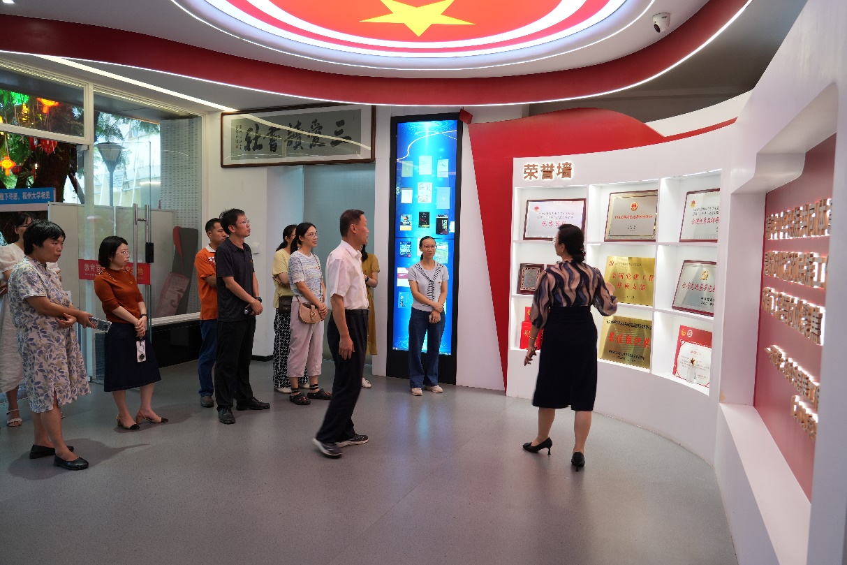 在福州大学刘敏榕工作室党支部书记刘敏榕老师的带领下,支部党员们认真参观了工作室的党建区、铸牢中华民族共同体意识区、文化融合区等区域,深入了解刘敏榕工作室在基层党组织建设、党员教育管理、服务师生发展等方面的创新做法和典型经验。刘敏榕老师从工作室的发展历程、领导关怀、政治引领、学业帮扶、社会实践、文化融合、生活关心、媒体宣传等方面做了详细介绍。